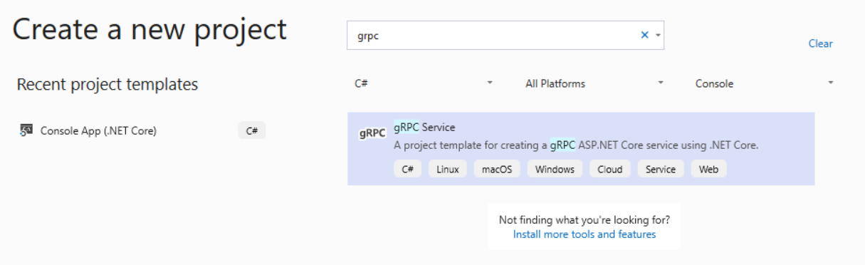 To consume the gRPC service that was created as default by Visual Studio lets create a .Net Core Console application to consume it